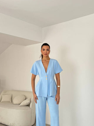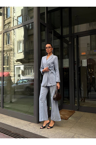 Rüzgarlık Detaylı Kuşaklı Kolsuz Kadın Şık Klasik Günlük Nişan Düğün Pantolon Yelek Takım