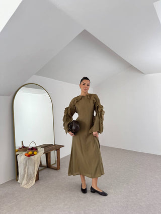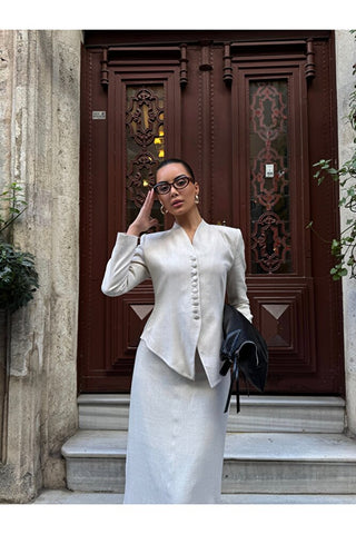 Kolu Büzgü Detaylı Astarlı Kadın Orta Boy Günlük Özel Gün Blazer Ceket