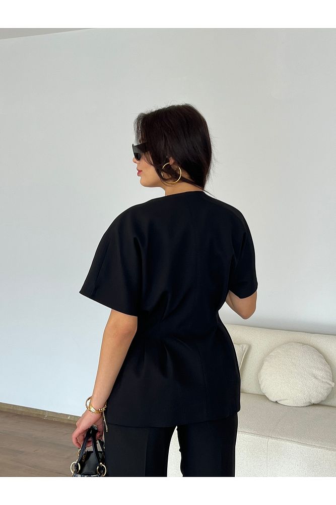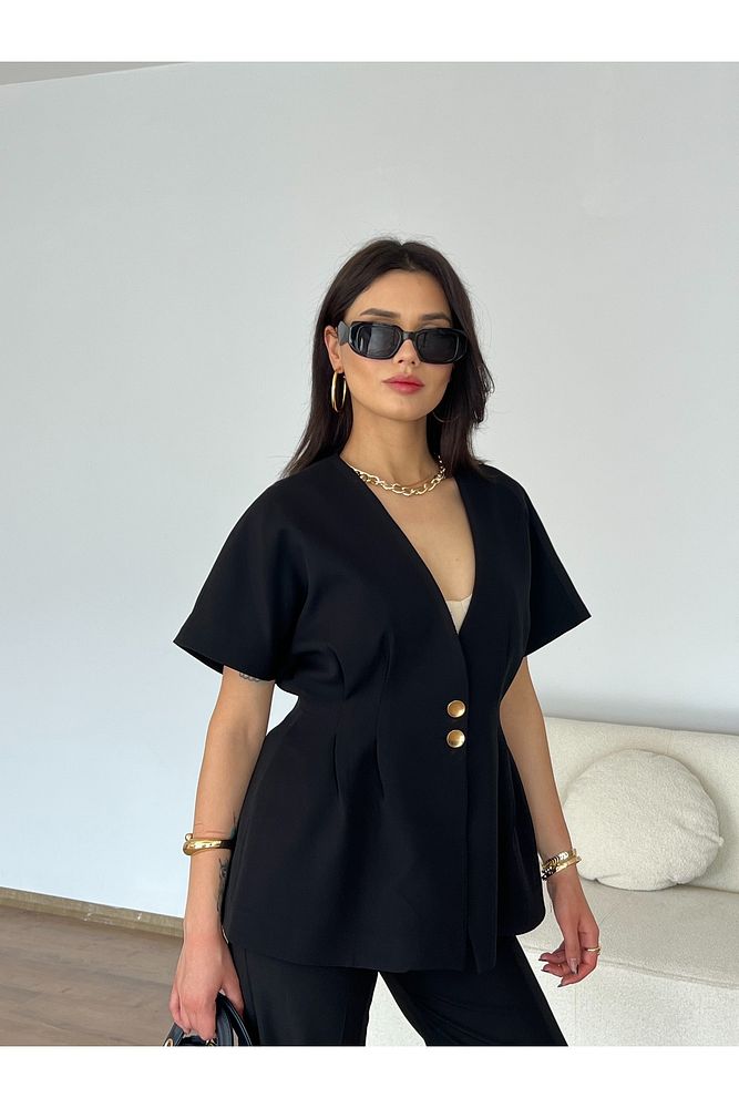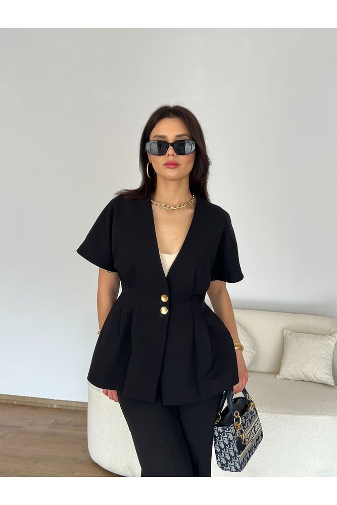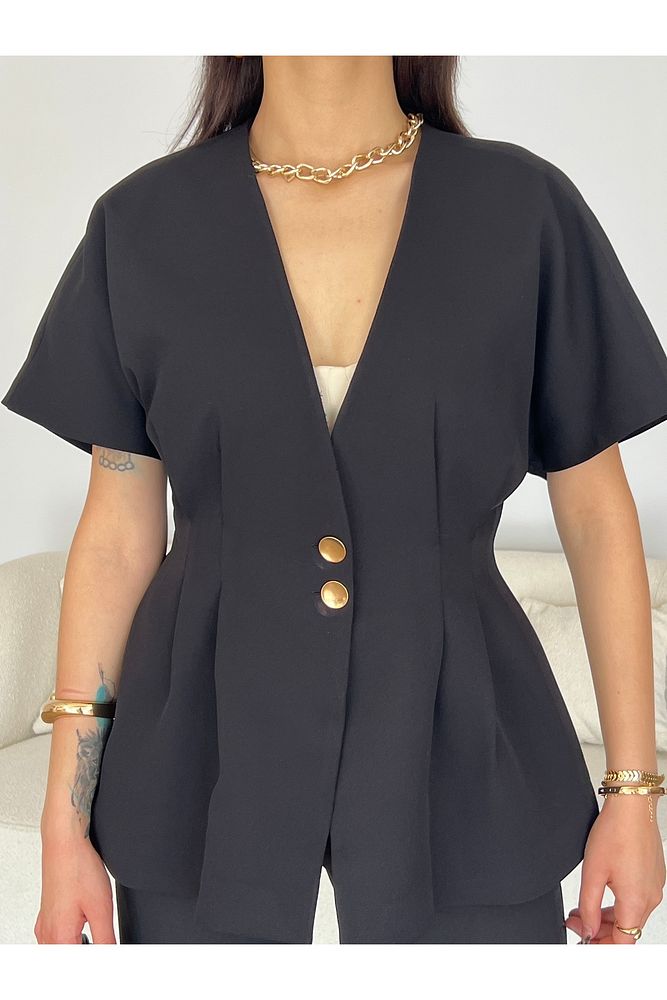 Belden Oturtmalı Kısa Kol Düğmeli Kadın Ceket