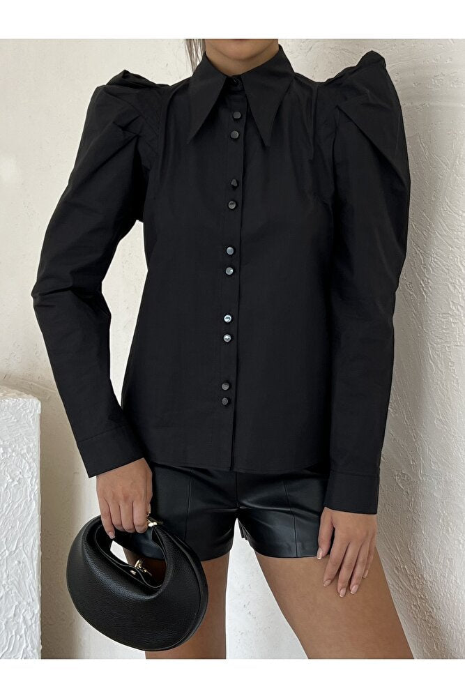 Omuz Detaylı Yakalı Kadın Günlük Şık Gömlek