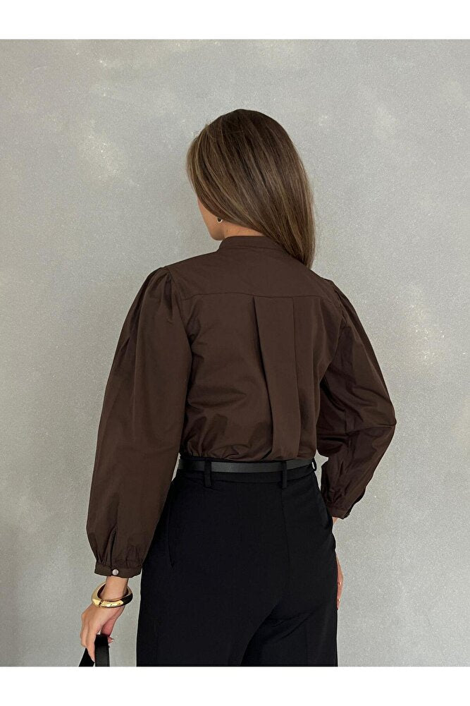 Önü Pileli Balon Kol Günlük Şık Gece Kadın Gömlek