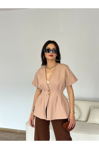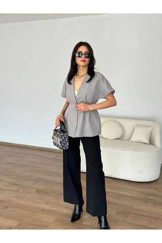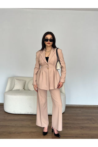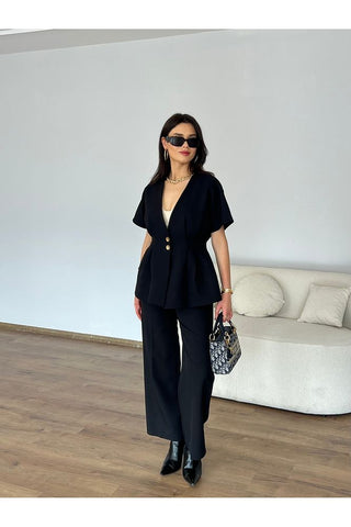 Rüzgarlık Detaylı Kuşaklı Kolsuz Kadın Şık Klasik Günlük Nişan Düğün Pantolon Yelek Takım