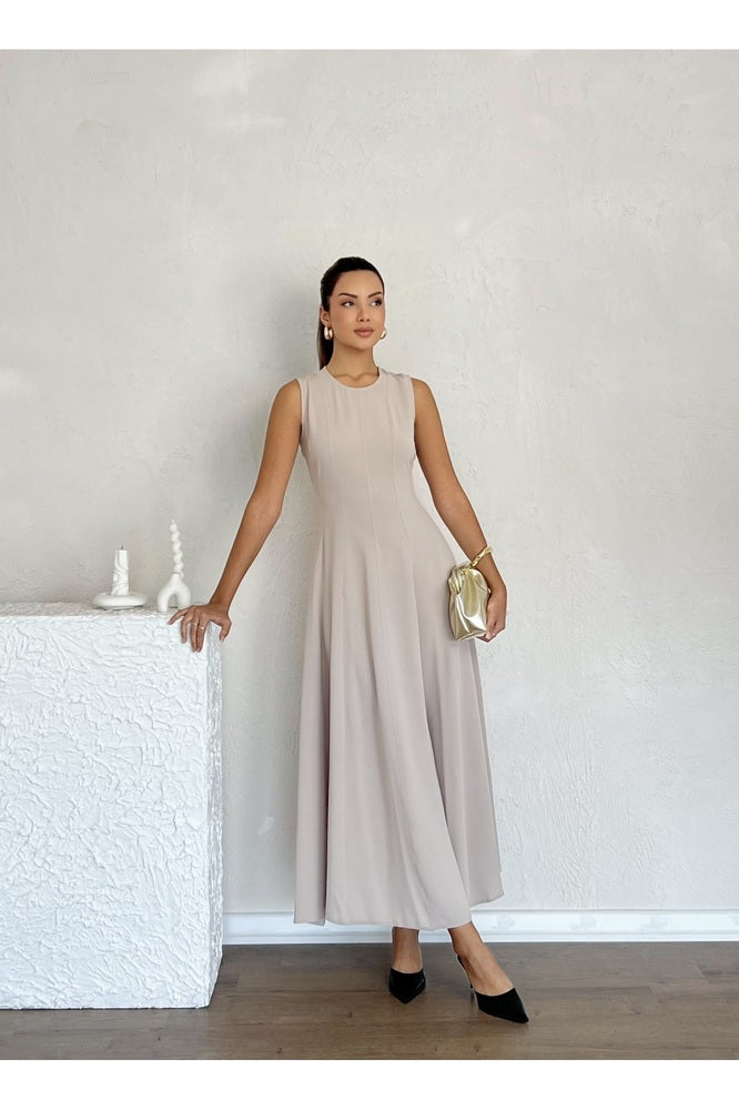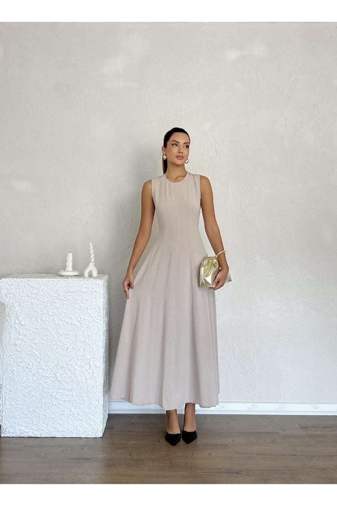 Biyeli Uzun Belden Aşağı Çan İnen Kolsuz Şık Günlük Kadın Elbise