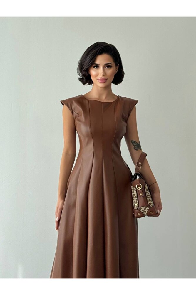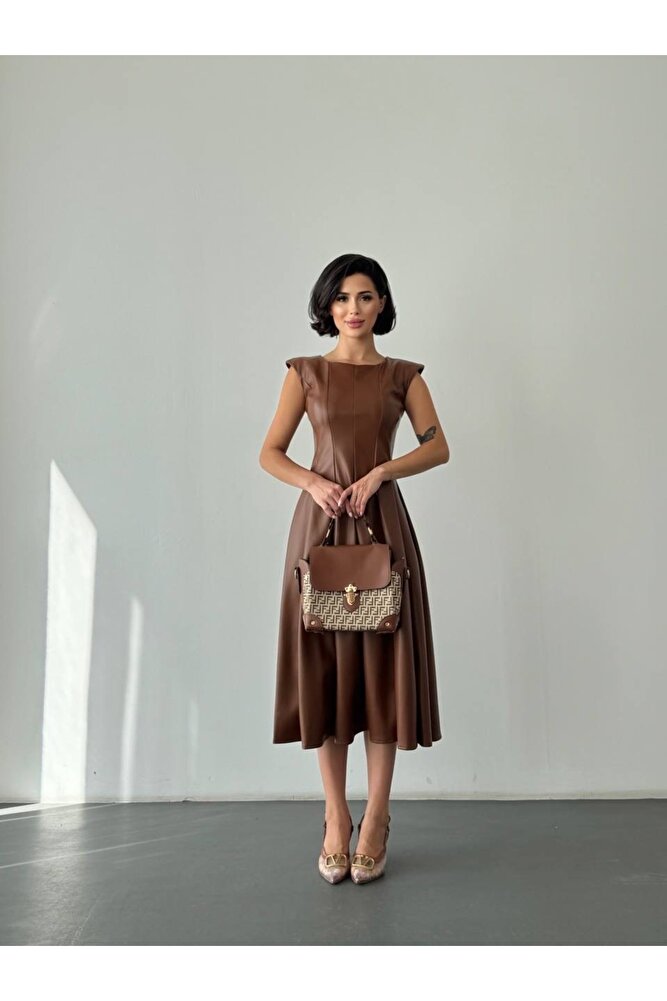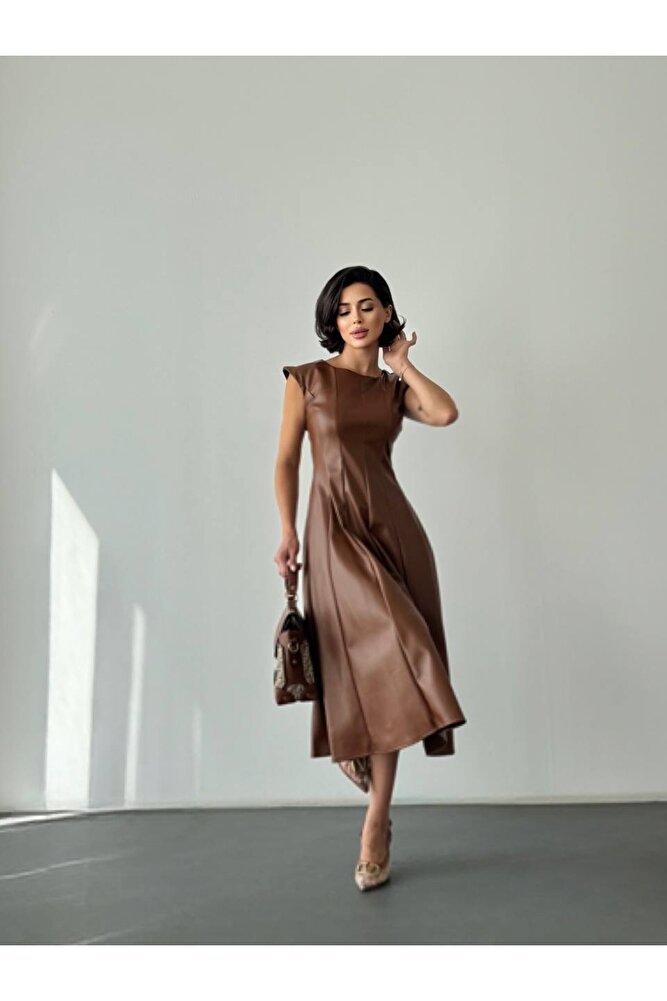 Deri Midi Boy Kolsuz Özel Gün Günlük Kadın Elbise