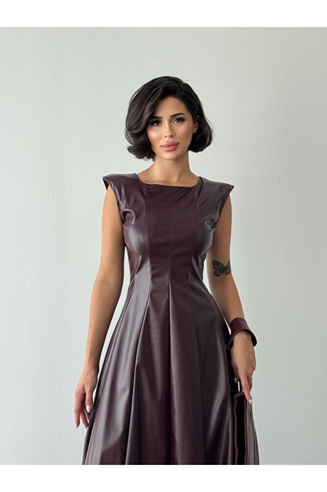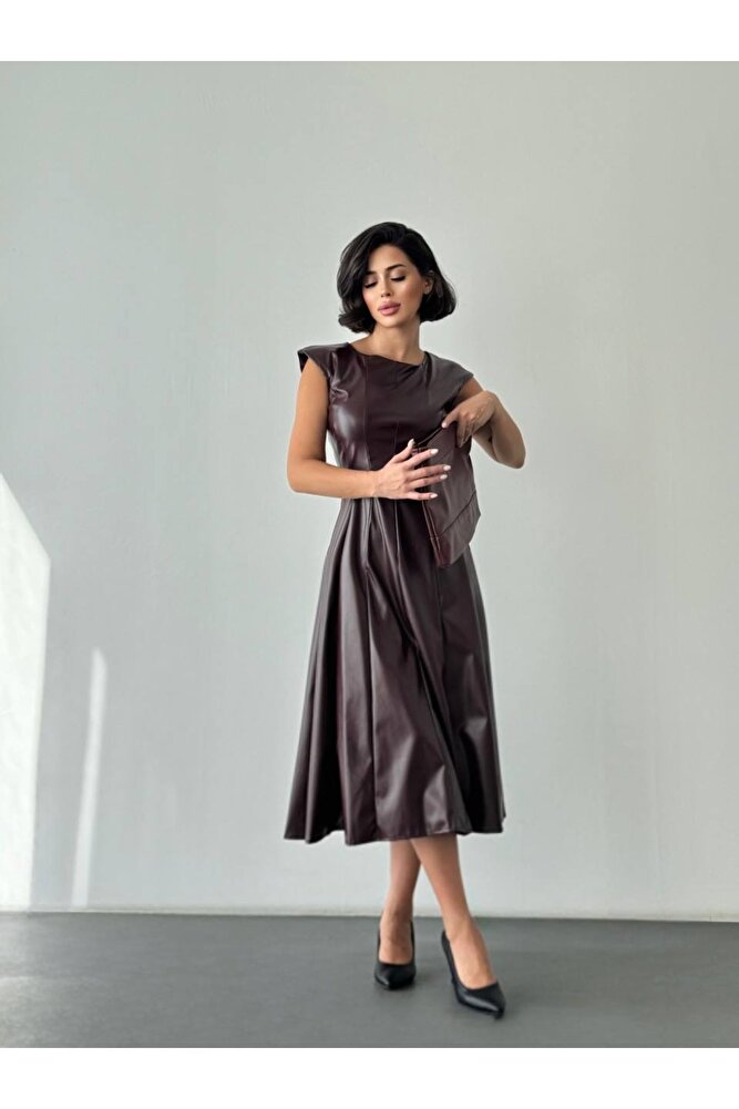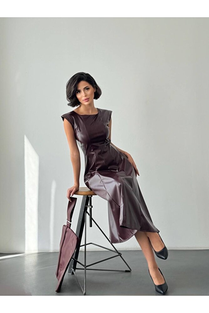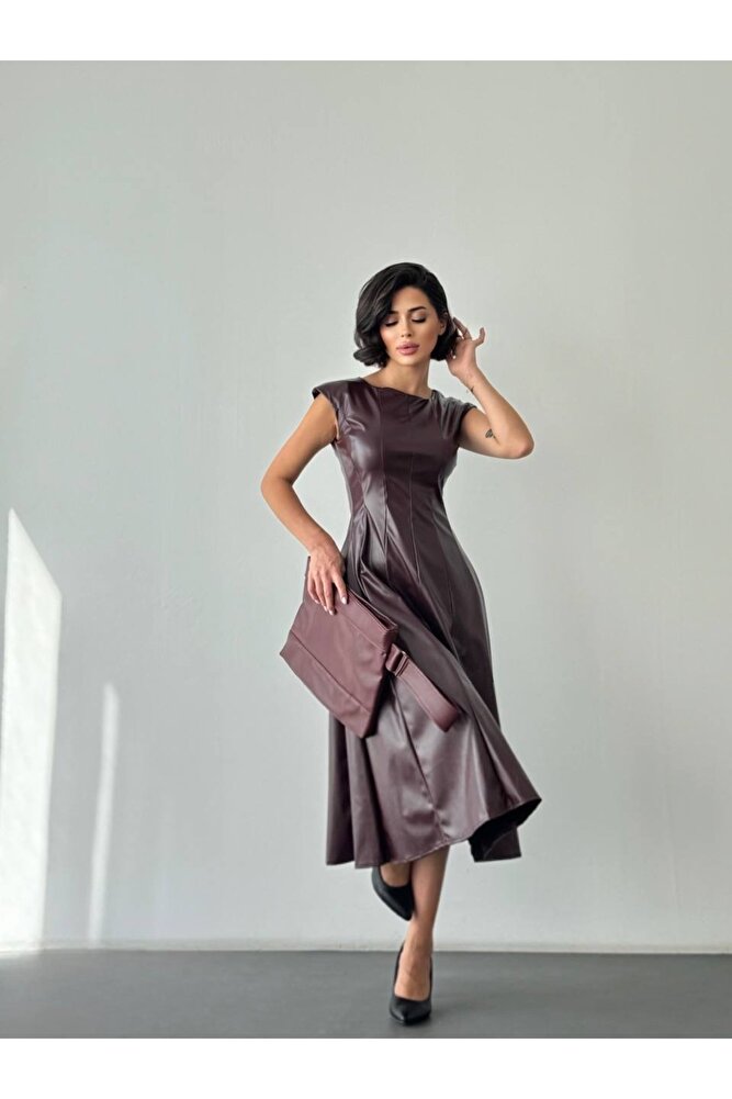 Deri Midi Boy Kolsuz Özel Gün Günlük Kadın Elbise