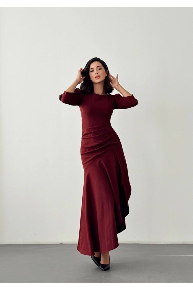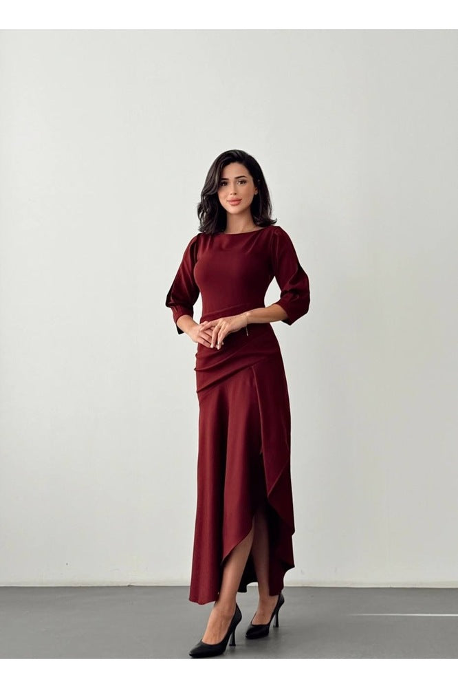 Eteği Yırtmaçlı Fırfırlı Uzun Boy Özel Gün Düğün Nişan Mezuniyet Kadın Elbise