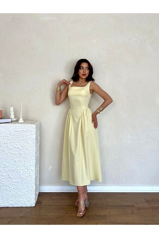 Kare Yaka Uzun Boy Günlük Özel Gün Kadın Elbise