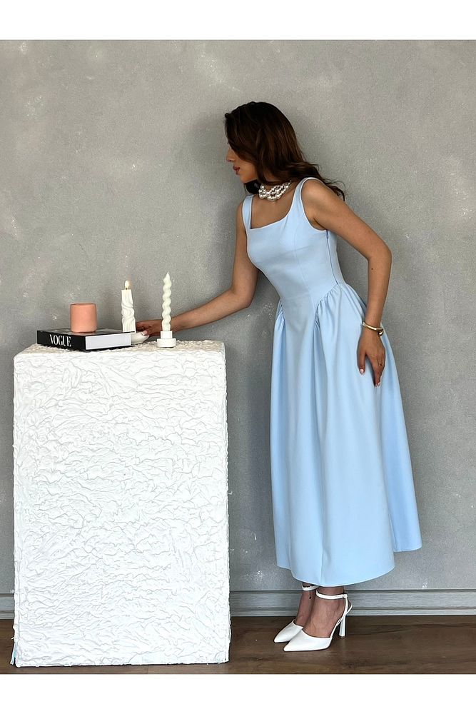 Kare Yaka Uzun Boy Günlük Özel Gün Kadın Elbise