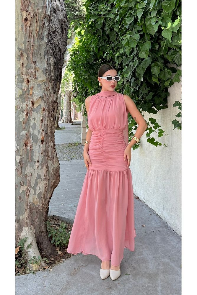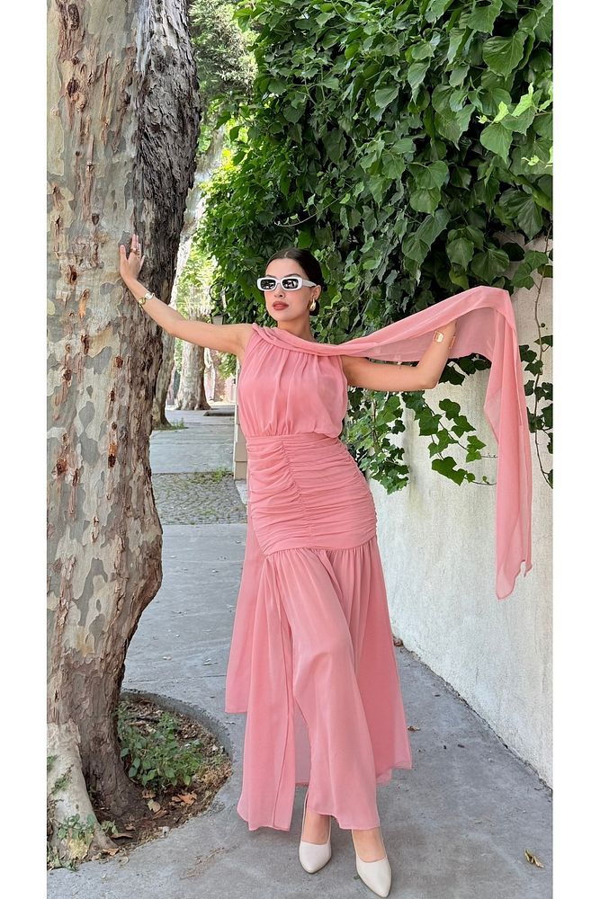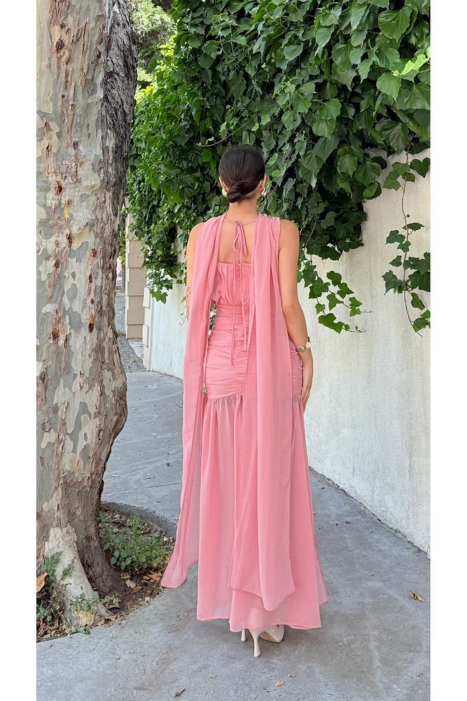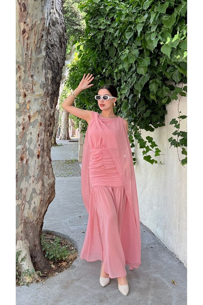 Pelerinli Eteği Şifon Astarlı Özel Gün Mezuniyet Düğün Kına Nişan Kadın Elbise