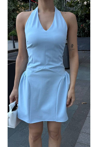 Sırt Dekolteli Boyundan Düğme Kapamalı Mini Yazlık Elbise
