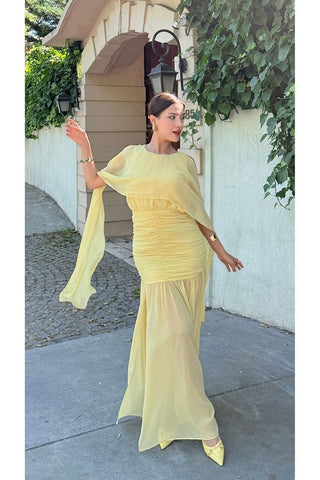 Pelerinli Eteği Şifon Astarlı Özel Gün Mezuniyet Düğün Kına Nişan Kadın Elbise