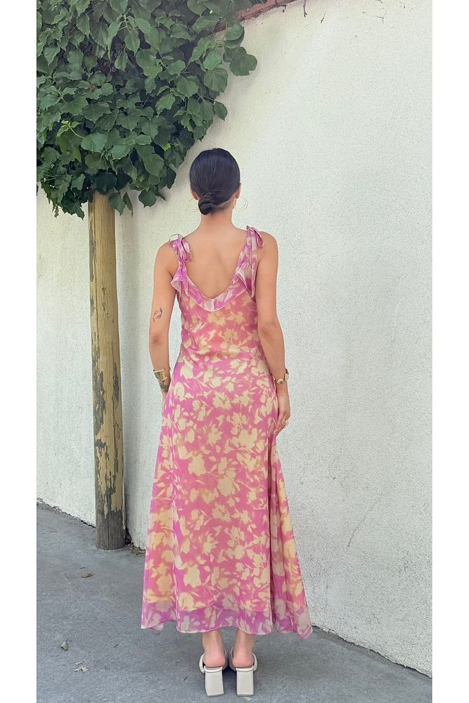 Desenli Askılı Uzun Boy Renkli Kadın Elbise