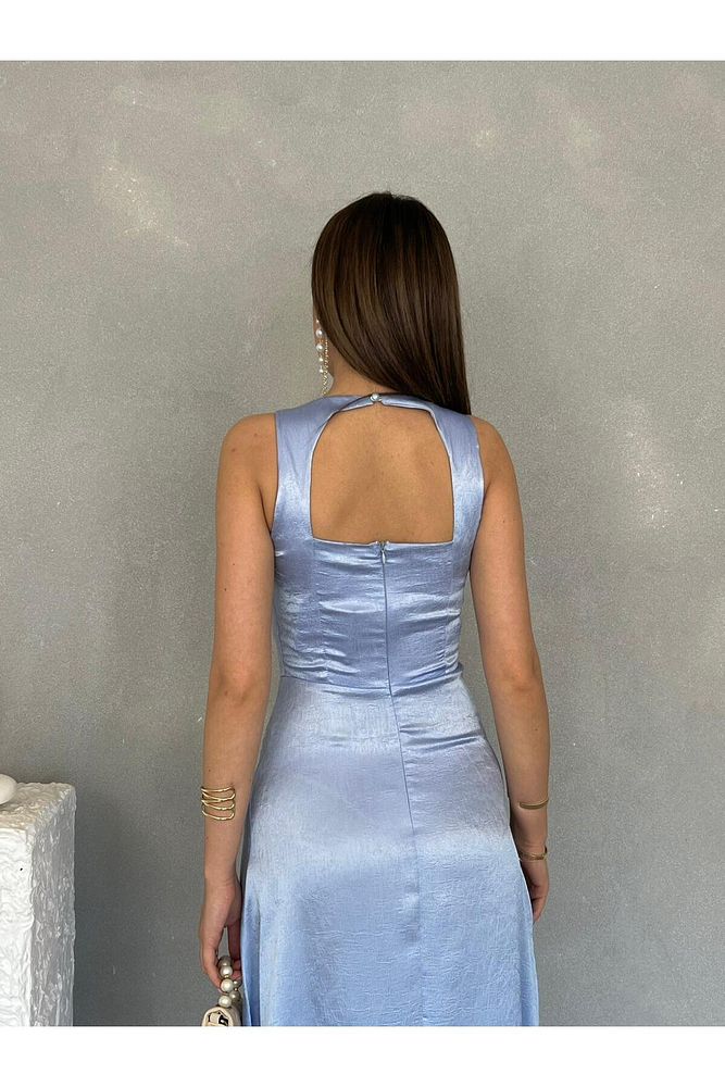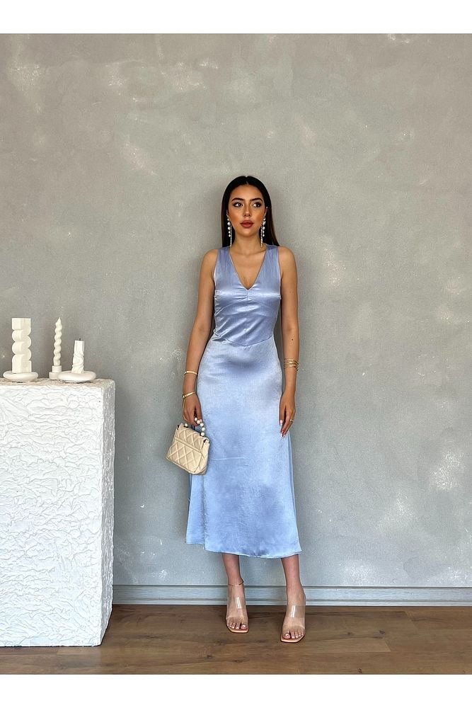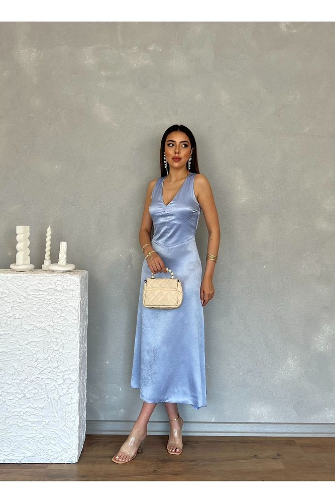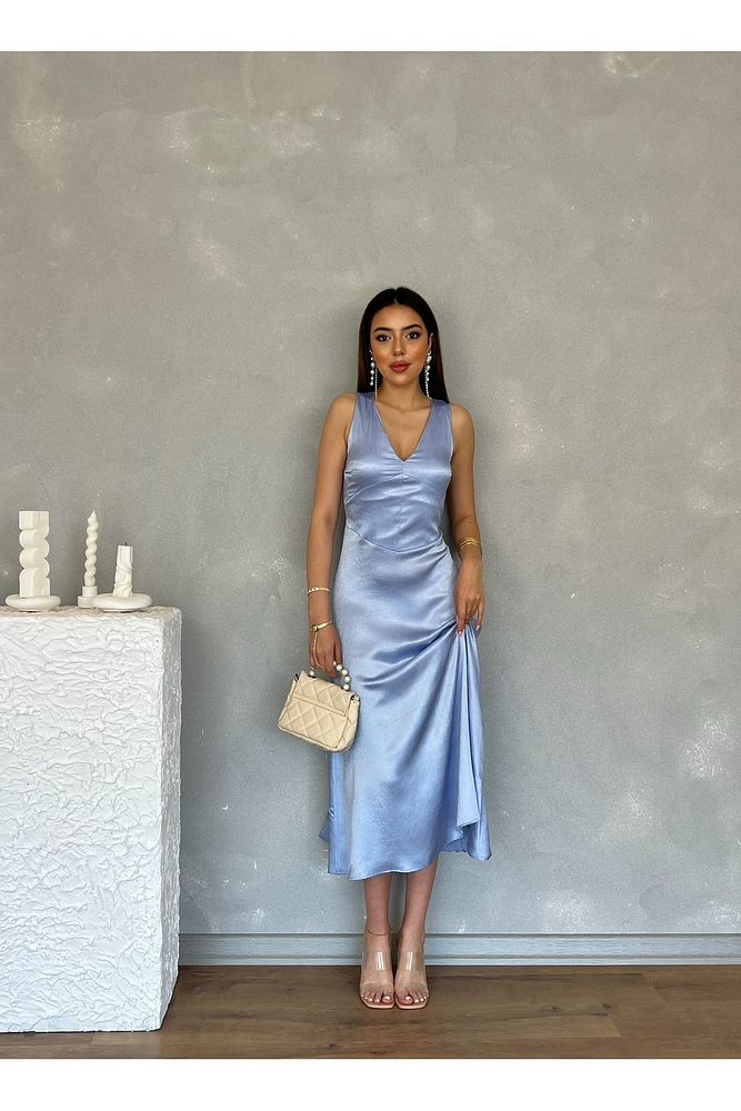 Kıraçlı Saten Midi Özel Gün Mezuniyet Nişan Abiye Kadın Elbise