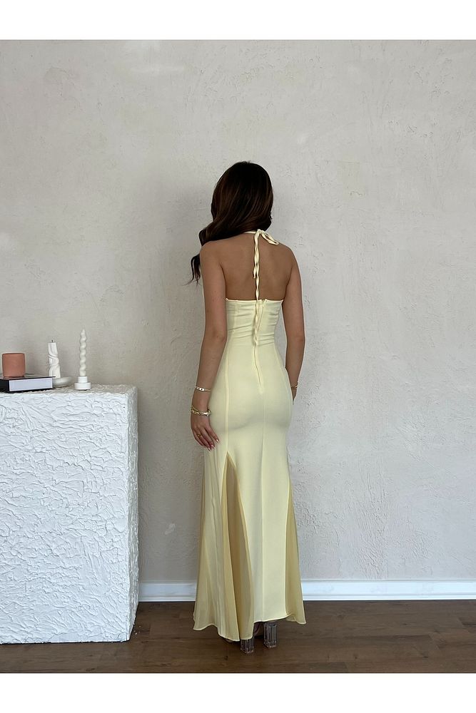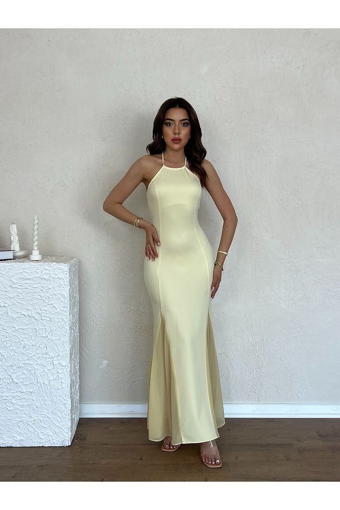 Şifon Detaylı Uzun Boy Vücudu Saran Gece Mezuniyet Nişan Kadın Elbise