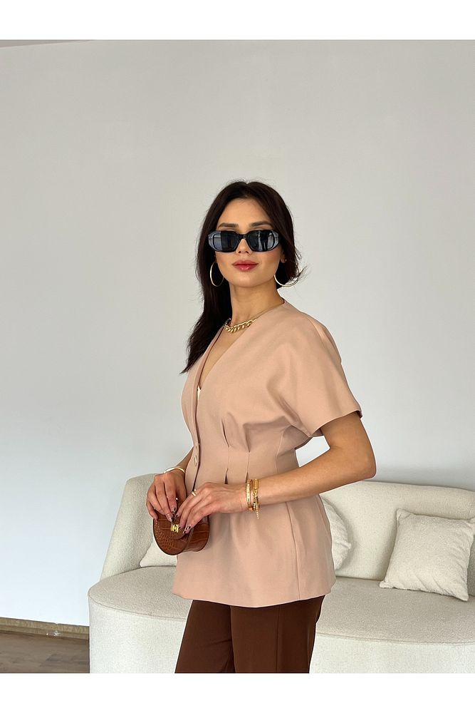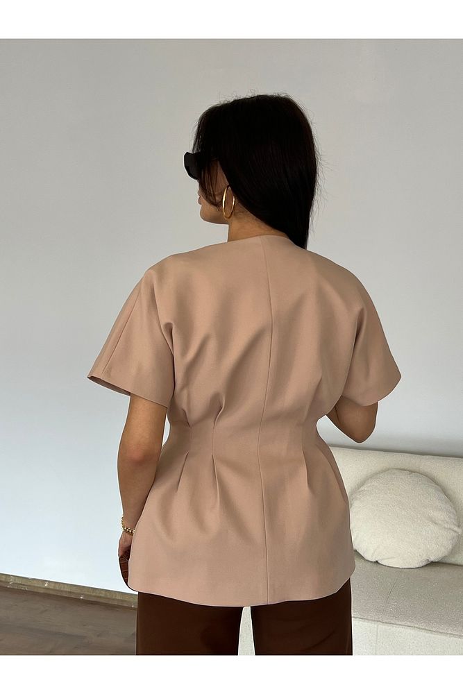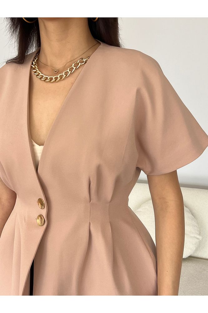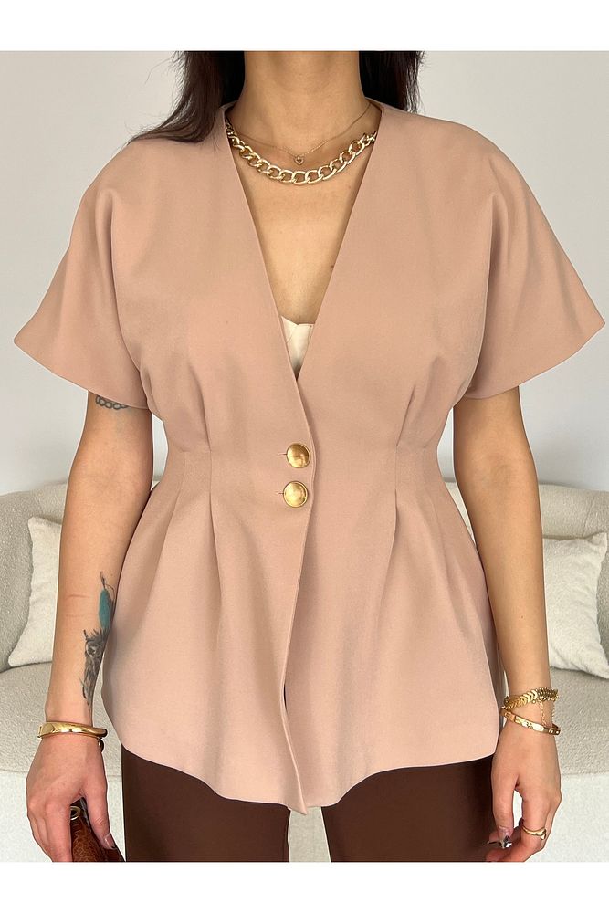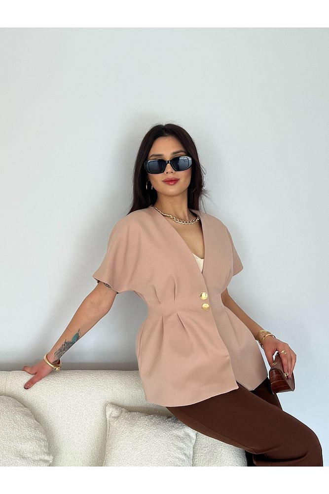 Belden Oturtmalı Kısa Kol Düğmeli Kadın Ceket